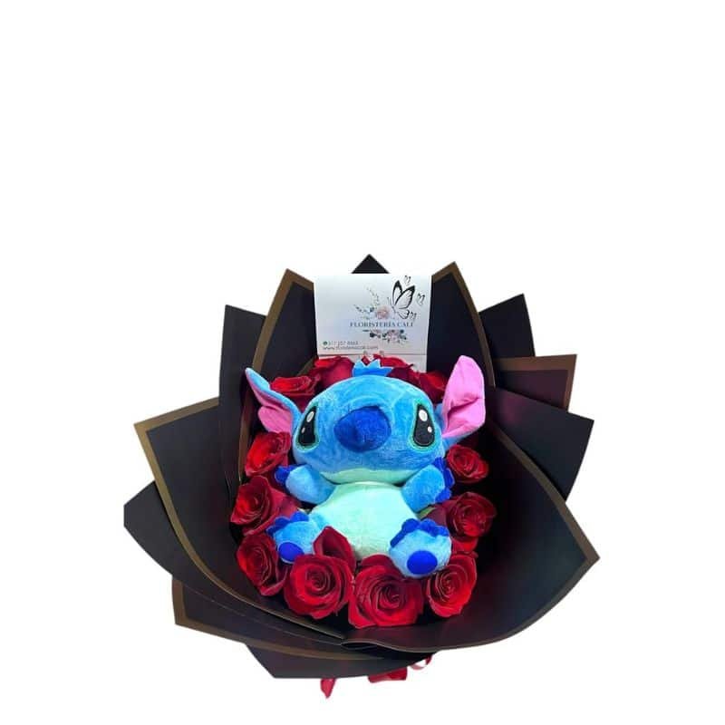 El «Amor Galáctico» es un detalle perfecto para expresar cariño y ternura. Este bouquet de rosas rojas simboliza el amor profundo, mientras que el peluche de Stitch aporta un toque juguetón y encantador que lo hace único. Incluye: