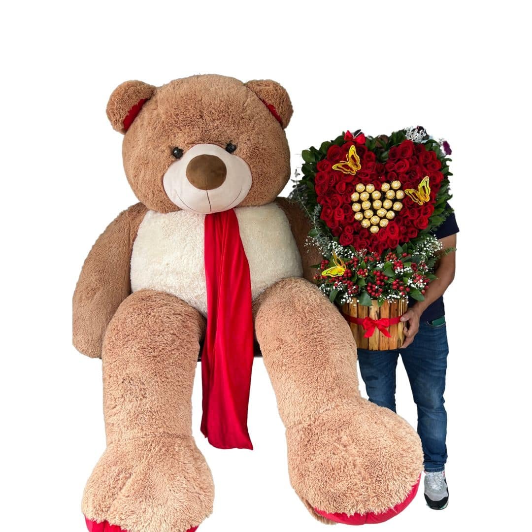 Arreglo de Rosas en Corazón + Peluche Gigante de 2 Metros