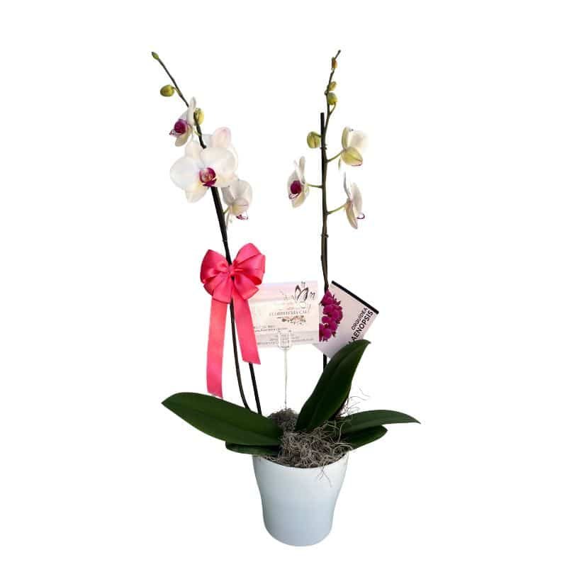 🌿 Planta de orquídea blanca viva, cultivada en maceta elegante.